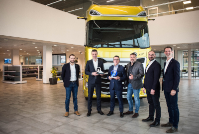 Fabien Calvet, membre du jury iTOY, a remis aux équipes de Daf en France les deux trophées internationaux remportés par Daf à l’occasion du salon Solutrans en novembre dernier.