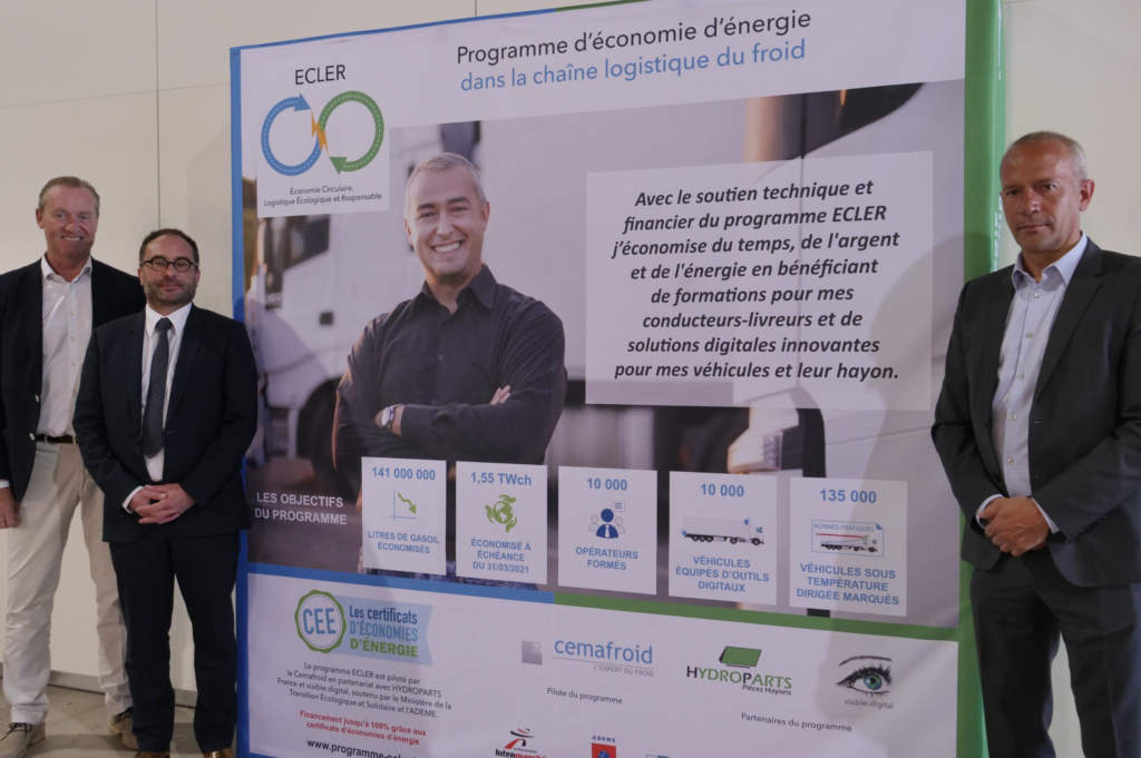 Cemafroid Formation va former 10 000 conducteurs de véhicules frigorifiques aux bonnes pratiques du transport sous température dirigée. (De g. à d.) : Marc Gamblin, Président de Dhollandia et d’Hydroparts France, Gérald Cavalier, Président du Cemafroid et Sébastien Lemoine, Président de Visible.Digital. ECLER INTÈGRE LES CEE Dans le cadre de la loi de transition énergétique […]